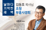 군산중앙교회는 오는 6월13일(금)부터 6월15일(주일)까지 높은뜻숭의교회에서 시무하셨으며, 현재 유튜브에서 '날마다 기막힌 새벽'을 운영하고 계신 김동호 목사님을 초청하여, "교회 체질 개혁! 예배가 예배되고, 교회가 교회되는 진정한 교회 세우기"라는 주제로 부흥사경회를 개최한다고 밝혔다.