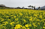 장흥군 안양면 기산마을 앞 들판이 노란색 유채꽃으로 물들었다. 사자산 기슭을 끼고 있는 기산마을에는 전원주택단지 로하스타운과 국제통합의학박람회장이 자리하고 있다.