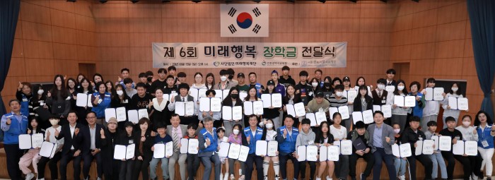 ○ 사단법인 미래행복재단(이사장 이강호)는 10월 15일 장학기금 마련을 위한 지난번“떡볶이랑 맥주랑 페스티벌” 행사에서 발생한 수익금을 가정 형편이 어려운 청소년들에게 인천시교육청 대강당에서 제6회 미래행복재단 장학금 전달식을 개최하였다.