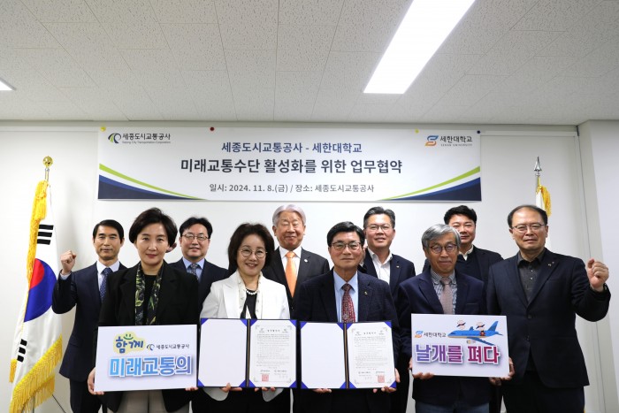 세한대학교 최미순 부총장 또한 “이번 협약을 통해 학생들과 교직원들이 항공‧교통산업에서 다양한 실무와 연구 기회를 접할 수 있어 기쁘다”며, “세종도시교통공사와의 협력을 통해 미래 교통산업 발전에 기여하겠다 ”고 전했다.