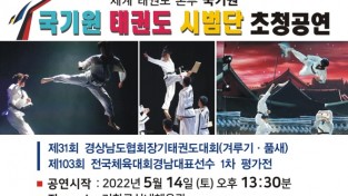 경남 18개 시군 태권도인 1,800여 명, 거창으로 다 모여!거창군은 오는 5월 14일,15일과 5월 21일 총 3일간 거창군체육관에서 ‘제31회 경남협회장기 겸 제103회 전국체전 경남 대표선수 선발 1차 평가전 대권도 대회’를 개최한다. 경상남도태권도협회가 주최하고 거창군태권도협회가 주관하는 이번 대회는 경남 18개 시군 초·중·고등·일반부 1,800여 명의 선수와 관계자가 출전하여 평소 갈고 닦은 실력을 마음껏 겨룬다. 첫째 날과 둘째 날은 초·중·고등부로 나누어 체급별, 단체별 겨루기 대회와 경남대표 1차 선발전을 개최...