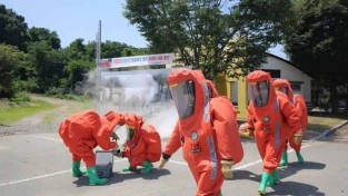 경상북도 소방본부는 18일 경주 엑스포대공원에서 2025년 APEC 정상회의를 대비한 화생방 대응 합동훈련을 했다. 훈련에는 경북119특수대응단, 중앙119구조본부, 경주소방서 구조대원 등 총 30명이 참여했다. 이날 훈련에는 지휘차, 화생방 제독차, 구조 버스 등 출동 차량 9대와 화학·생물학 수집 장비, 휴대용 제독기, 누출 차단 키트 등 15종 62점의 장비가 동원됐다. 이날 훈련은 경주 엑스포대공원 내 주차된 냉동 탑차에서 배관 부식으로 인해 암모니아(NH₃) 0.5톤이 누출되는 사고가 발생한 상황을 ...