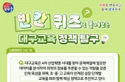 다품캠페인 빈칸퀴즈 이벤트대구광역시교육청은 오는 4월 1일부터 12일까지 12일간 시교육청 블로그와 SNS채널을 통해 대구교육정책을 탐구하며 이해하는‘다품캠페인 빈칸퀴즈 이벤트’를 진행한다. 대구교육 정책에 대한 시민의 관심과 참여를 높이기 위해 마련한 다품캠페인은 올 해 총 6회에 걸쳐 운영되며 유튜브, 페이스북, 블로그 등 대구시교육청 SNS 7개 채널을 통해 참여할 수 있다. 이번 캠페인 주제는 인공지능(AI) 교육이다. AI 교육은 4차 산업혁명 시대를 맞아 문제해결에 필요한 데이터를 분석하여 최적의 정보를...