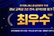 교육감공약이행평가 웹배너 경상남도교육청은 31일 한국매니페스토실천본부의 ‘2022년 전국 교육감 공약 이행 및 정보공개 평가’에서 박종훈 경상남도교육감이 최고 등급(SA)을 받았다고 밝혔다. 이는 지난 4년간 박종훈 교육감이 교육 공동체와 소통하며, 도민과의 약속인 공약을 성실히 이행하였음을 인정받은 것이다. 매니페스토본부는 경남교육청 공약사업평가위원회의 민주적 구성과 절차, 주민 눈높이에 맞춘 공약 누리집 구성, 전자 민주주의 도입 활성화 등 노력에 대해 공약 이행의 민주성과 신뢰성, 도민의 공약 이행 이해도 향상을 위...