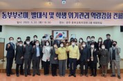 광주동부교육지원청, 2022년 ‘동부부르미‘ 발대식 및 학생 위기관리 역량강화 컨퍼런스 실시광주동부교육지원청이 지난 22일 위기학생에 대한 신속대응을 위해 2022년 ‘동부부르미‘ 발대식 및 학생 위기관리 역량강화 컨퍼런스를 실시했다. 22일 동부지원청에 따르면 ’동부부르미‘는 위기 학생에 대한 적극 대응을 통해 사안의 확대를 막고 자살 예방을 최우선으로 하는 학교 지원 중심의 컨설팅 운영단이다. 또 학교폭력 발생 후 화해 조정 프로그램을 운영하고 학교장자체해결제 안착을 위한 사안을 처리하는 등 실질적인 도움을 제공하고 있다....