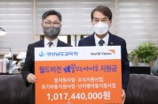 지원금 전달경상남도교육청은 21일 월드비전 경남울산사업본부와 ‘꿈꾸는 아이들’ 사업을 협력하기로 하고 기탁금 전달식을 열었다. ‘꿈꾸는 아이들’은 월드비전 경남울산사업본부가 취약계층 아이들에게 꿈을 찾아 도전하고 성장할 수 있도록 지원하는 사업이다. 난치병 아동 지원, 조식 지원, 꿈 지원, 위기 아동 지원 등 경남 학생들에게 총 10억 1천여만 원을 지원한다. 난치병 아동 지원 사업은 난치병으로 어려움을 겪고 있는 아이들이 어려운 현실을 이겨내고 내일의 희망을 만드는 데 도움을 준다. 월드비전이 기탁금 2천만 원을, 경...
