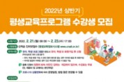 충청남도태안교육지원청태안도서관, 2022년 상반기 평생교육프로그램 수강생 모집충청남도태안교육지원청태안도서관은 상반기 평생교육프로그램 '글쓰기는 처음이라 처음글쓰기' 등 학부모, 유아, 학생 대상 8개 강좌의 수강생을 21일부터 23일까지 모집한다. 학생들의 독서 창의력 발달과 4차 산업혁명시대 창의융합 체험활동을 위한 프로그램들로 다양하게 개설되어 3월부터 6월까지 진행될 예정이다. 모집 강좌는 '▲유아강좌-두근두근 책이 좋아 북스타트, 그림책 숲을 만나다 ▲학생강좌-쉽고 즐겁게 그림책 영어, 나도 콘텐츠 기획자 메타버스 코딩,...