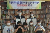 울진도서관과 울진군 지역아동센터 업무협약 체결식경상북도교육청 울진도서관(관장 배용호)과 울진지역아동센터(센터장 임순남)는 문화취약계층 어린이들에게 독서문화 향유 기회를 제공하고 독서 경험을 통한 올바른 정서 함양에 기여하기 위해 4일 업무협약(MOU)을 체결했다. 주요 협약 내용으로는 문화취약계층 어린이를 위한 독서관련 프로그램 지원, 상호 기관의 정보교류 및 홍보를 위한 협력 등이다. 협약의 일환으로 5월 11일부터 매주 수요일 '그림책과 놀자' 프로그램이 총 10회에 걸쳐 울진지역아동센터에서 운영될 예정이다. 배용호 관장...