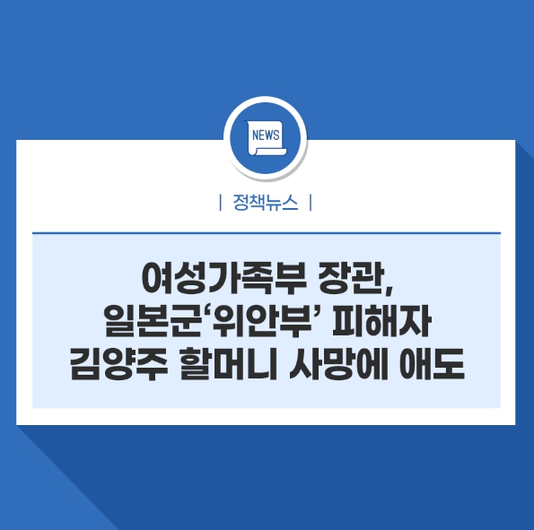 정영애 여성가족부 장관은 5월 1일(일) 별세하신 일본군‘위안부’ 피해자 김양주 할머니의 사망에 깊은 애도의 뜻을 전했다.