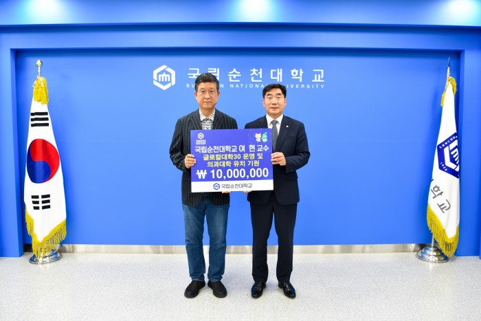 [검경합동신문 염진학 기자] 국립순천대학교(총장 이병운) 인공지능공학부 여 현 교수가 글로컬대학 성공과 의과대학 유치를 기원하며, 대학발전기금 일천만원을 추가로 기탁하였다고 밝혔다.