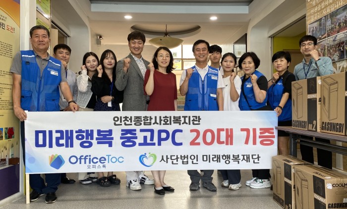 (사)미래행복재단 이강호이사장과 오피스 톡(이관형 대표)는 지역주민들을 위해 나눔을 실천하는 인천종합사회복지관에 중고 컴퓨터 20대를 나눔하였다.
