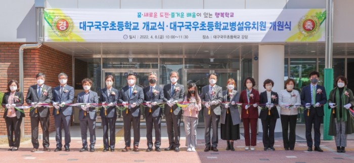 대구국우초등학교(교장 이교화)는 4월 8일 김동호 교육국장을 비롯한 지역사회 관계자, 학부모, 교직원 등 70여 명이 참석한 가운데 개교 기념식을 개최했다.