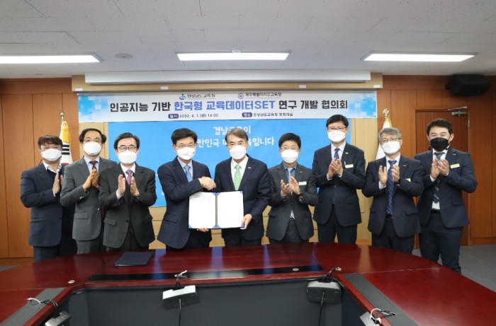 경상남도교육청과 제주특별자치도교육청은 4월 1일(금) 경남교육청 중회의실에서 빅데이터·인공지능 플랫폼 아이톡톡 성과를 바탕으로 ‘인공지능 기반 한국형 교육 데이터 세트’를 구축하기 위한 업무 협약식을 열었다.
