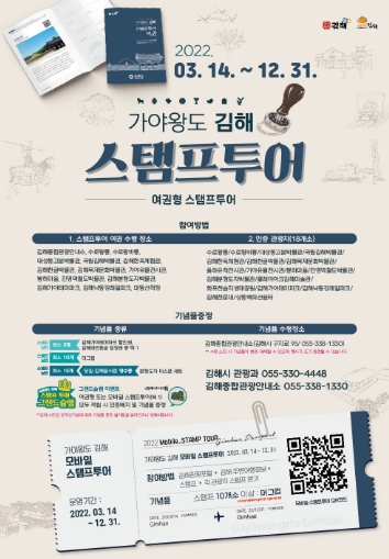 김해시는 이달부터 관광객을 대상으로 하는 ‘가야왕도 김해 스탬프투어’를 개편하여 운영한다고 10일 밝혔다.