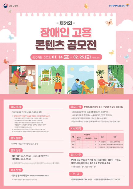 고용노동부와 한국장애인고용공단은 '2022년 제31회 장애인고용 콘텐츠 공모전'을 개최한다.