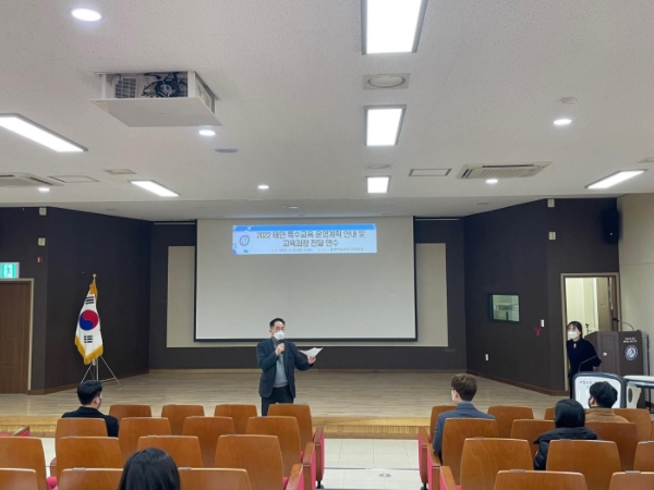 태안교육지원청은 2월 25일 태안교육지원청 종합학습센터 어울림홀에서 관내 유·초·중·고등학교 특수교사 33명(신규교사 포함)을 대상으로 2022 태안 특수교육 운영계획 및 교육과정 전달 연수를 실시했다고 밝혔다.