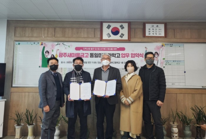 동일미래과학고등학교가 지난 24일 광주새마을금고(이사장 이일봉)와 지역사회발전 및 청소년 복지 증진을 위한 업무 협약을 체결했다.