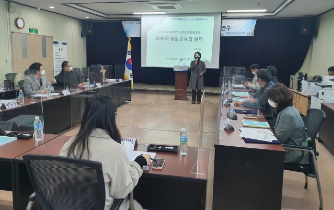 서귀포시교육지원청은 2022년 2월 23일 오후 2시 30분 서귀포시교육지원청 학교폭력대책심의위원회 심의실에서 서귀포시 학교폭력화해조정지원단 조정위원 15명을 대상으로, 학교폭력 관련 법령 이해를 통한 사안처리, 분쟁 조정 능력 향상 및 회복적 화해조정 역량 강화를 통한 행복한 학교문화 조성을 위한 학교폭력화해조정지원단 위촉식과 역량강화 연수를 실시하였다.