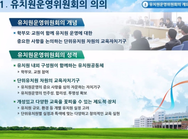 이천교육지원청은 2월 17일 ‘2022 유치원운영위원회 간사 연수’를, 18일 ‘2022 학교운영위원회 간사 연수’를 실시했다고 밝혔다. 이번 교육은 화상회의 시스템을 활용하여 비대면 연수로 진행되며 총 70여명의 운영위원회 간사가 참여했다.