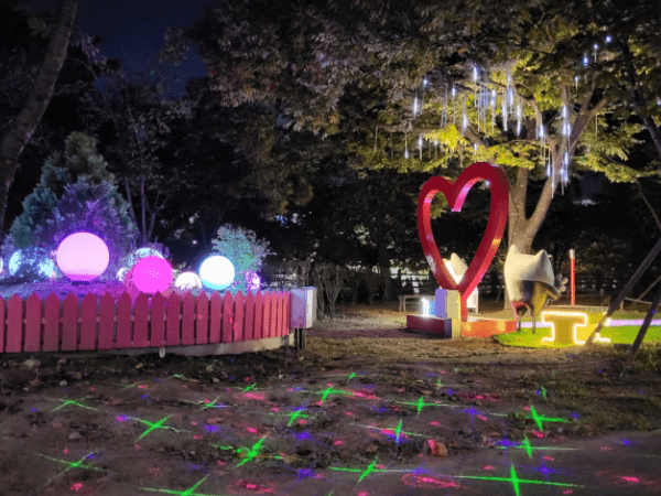 대구 북구청은 북구 명소 중 벚꽃시즌 가장 인기있는 “꽃보라 동산”에 야간에도 많은 이들이 찾을 수 있도록 어두운 산책로 주변 밝고 볼거리 있는 야간경관시설을 설치했다.
