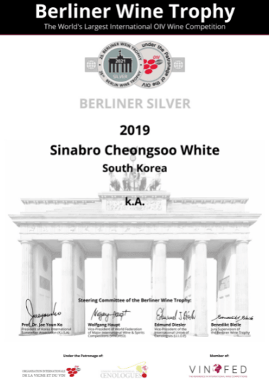 이번에 실버상을 수상한 불휘농장“시나브로 청수 화이트”는 2019년 빈티지로 제8회 한국와인대상 실버상, 2021 우리술품평회 과실주 부문 최우수, 2019년 우리술품평회 과실주 부문 최우수상을 수상한 국내에서도 인정받은 와인이다.
