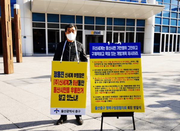 울산 중구 주민들이 당초 10월 말까지 진행 예정이었던‘울산 중구 혁신도시 내 신세계 부지 개발 촉진 릴레이 1인 요구활동’을 11월에도 이어간다.