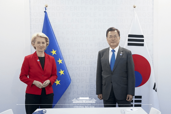 G20 정상회의 참석차 이탈리아를 방문 중인 문재인 대통령은 30일 오후(현지시각) 로마 누볼라 컨벤션 센터에서 우르술라 폰 데어 라이엔 EU 집행위원장과 회담을 가졌다.