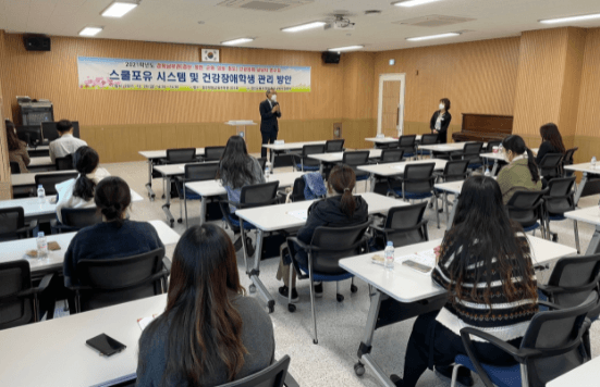 경산교육지원청 특수교육지원센터는 10월 29일 경북 남부권(경산,영천,군위,의성,청도) 건강장애학생이 배치된 소속학교 담임교사 또는 업무 담당교사를 대상으로 학생교육지원관 201호에서‘2021학년도 경북 남부권 건강장애 담당자 역량 강화 연수회’를 개최하였다.