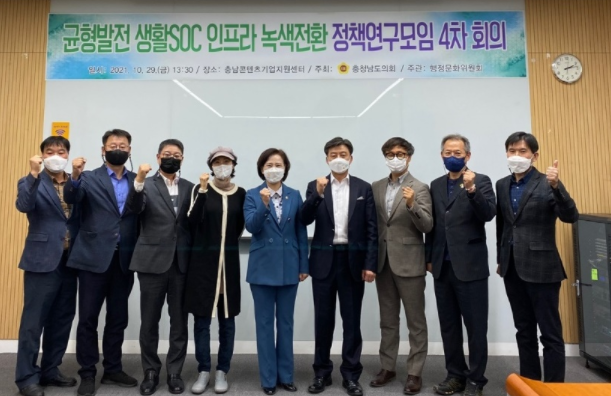 충남도의회 ‘균형발전 생활SOC 인프라 구축 및 녹색전환 정책 연구모임’(대표 김연)은 29일 충남콘텐츠기업지원센터에서 4차 회의를 갖고 환경과 수소경제·관광개발 분야의 그린뉴딜 방안을 모색했다.