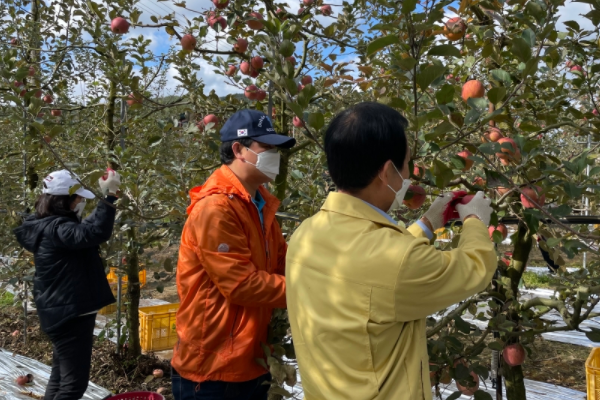 경상북도의성교육지원청 직원 30여 명은 29일 점곡면 소재 사과농가를 찾아 농촌일손돕기 봉사활동을 실시했다.