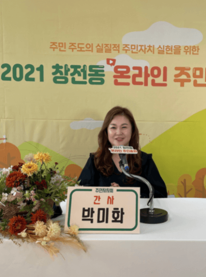 창전동 주민자치회 박미화 간사가 온라인 주민총회를 진행하고 있다.