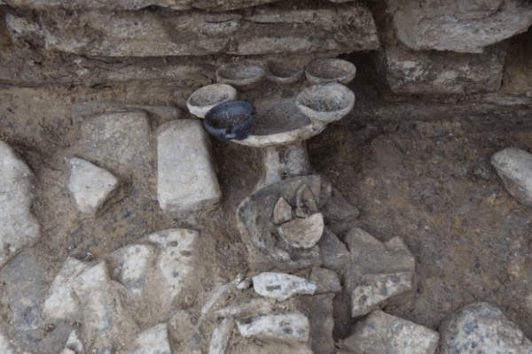 고대의 등잔 토기는 다리가 붙은 넓은 접시에 등잔 2~5개가 붙은 것이 대부분인데 말이산 출토 굽다리등잔은 전형적인 아라가야식 굽다리접시에 등잔 7개가 부착된 것이 특징이다.