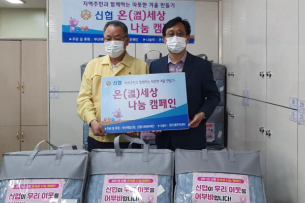부산제일신용협동조합은 지난 10월 27일 동래구 온천3동 행정복지센터에 이웃돕기 성품과 양모 이불 15채(100만 원 상당)를 전달했다.