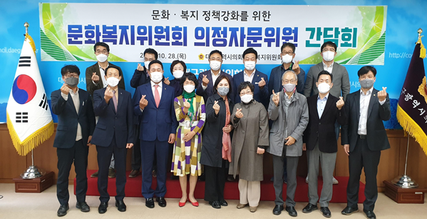 대구광역시의회 문화복지위원회는 10월 28일 오전 11시 시의회 2층 간담회장에서 소관 의정자문위원과 소속 의원 등 17명이 참석한 가운데 문화, 복지, 여성, 시민건강 정책 강화를 위한 간담회를 개최했다.