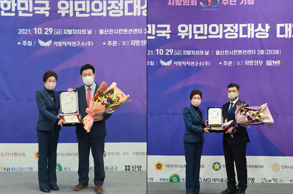 대구광역시의회 이시복 의원(비례)과 김원규 의원(달성군2)이 10월 29일 10시 울산전시컨벤션센터에서 열린 ‘제4회 대한민국 위민의정대상’ 시상식에서 각각 최우수상과 우수상을 수상했다.