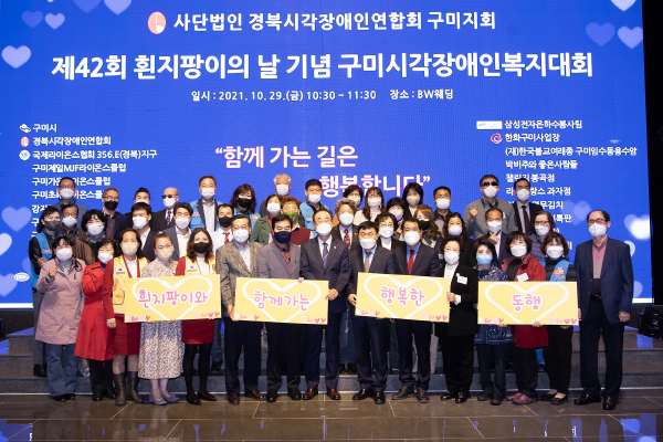 구미시에서는 10. 29. 10:30 BW웨딩에서 장애인 복지 증진 유공자, 시각장애인 등 50여명이 참석한 가운데, 사)경북시각장애인연합회 구미지회 주관으로 「제42회 흰지팡이의 날 기념 구미시각장애인복지대회」를 개최하였다.