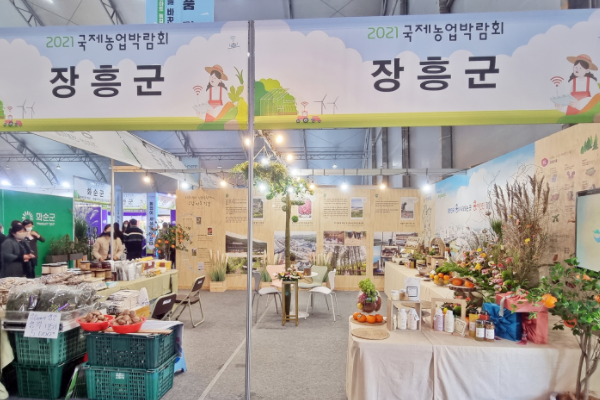 장흥군은 전남농업기술원 일원에서 열린 2021 국제농업박람회에서 장흥군을 대표하는 농특산물뿐 아니라 지역에서 생산되는 아름다운 생화들과 장흥 발효차 청태전 생산자와 함께하는 농특산물 홍보관 운영을 통해 관람객들로부터 큰 호응을 받았다.