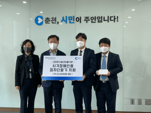 춘천시정부는 29일 한세예스24문화재단과 함께하는 「점자단말기 기부품 전달식」을 개최했다.