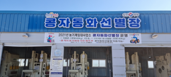 영광군은 11월 1일부터 12월 말일까지 2개월간 농업인 노동력 절감 및 콩 품질 향상을 위하여 콩자동화선별장을 운영한다고 밝혔다.