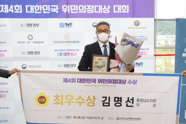 충남도의회 김명선 의장이 29일 지방자치의 날을 맞아 울산광역시 울산전시컨벤션센터에서 열린 『제4회 대한민국 위민의정대상』에서 ‘최우수상’을 수상했다.