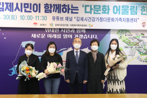 김제시는 김제시건강가정다문화가족지원센터(센터장 장순호) 주관으로 지난 10월30일 “제11회 다문화 어울림 한마당 행사”를 ‘김제시민과 함께’라는 부제로 유튜브와 zoom을 통해 성황리에 행사를 개최하였다.