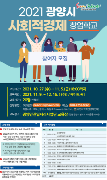 광양시가 2021년 사회적경제 창업학교 교육생을 모집한다.