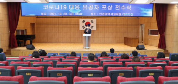 인천광역시교육청은 29일 코로나19 대응과 확산방지에 기여한 유공자 100명에게 교육감 표창을 수여했다.