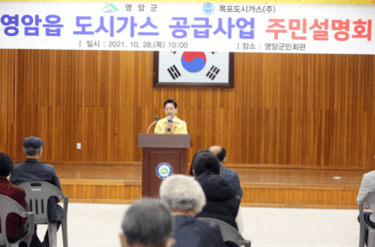 영암군은 목포도시가스(주)와 함께 지난 28일 영암군민회관에서 코로나 관련 사회적거리두기 방역지침을 준수하여, 주민 70여 명이 참석한 가운데 영암읍 도시가스 공급사업 주민설명회를 개최했다.