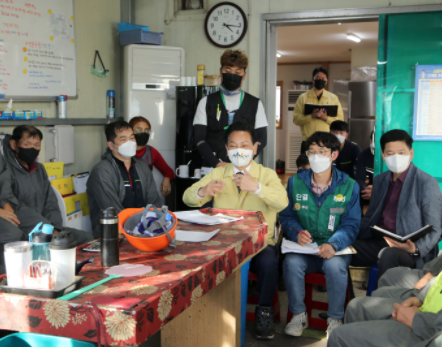 전동평 군수는 공무직노조(박민주 지부장)와 함께 격무부서인 그린환경자원센터를 찾아 환경실무원들과 관계자 노고를 격려하고 건의사항을 청취했다.