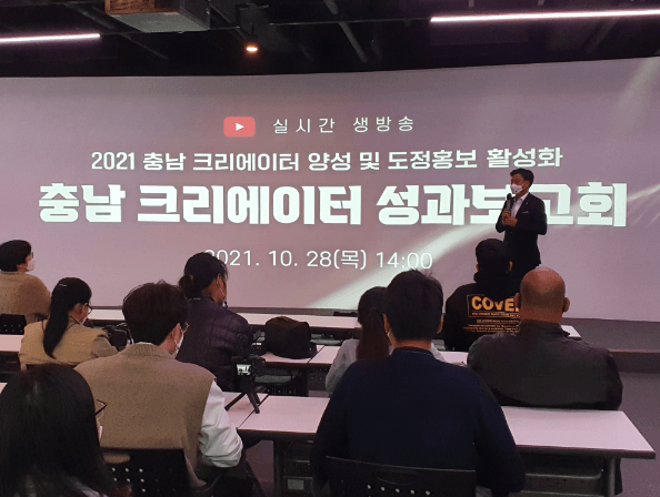 충남도는 28일 아산시 소재 충남콘텐츠기업지원센터에서 ‘2021년 충남 크리에이터 양성 및 도정 홍보 활성화 성과보고회’를 개최했다.
