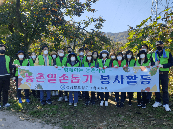 청도교육지원청은 10월 28일 청도군 각남면 소재 감 재배 농가를 방문해 농촌 일손 돕기를 실시했다.