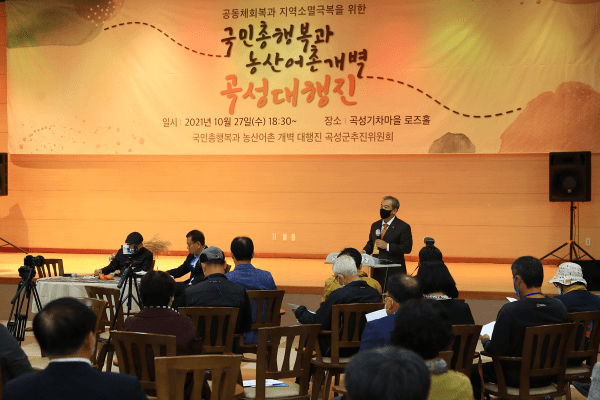 지난 27일 곡성군에서는 국민총행복과 농산어촌 개벽 대행진(이하 ‘국민대행진’)이 진행됐다. 국민대행진은 도올 김용옥과 소빈 박진도를 발기인으로 하는 추진위원회가 농어촌과 농어민의 문제를 해결하기 위해 시작한 캠페인이다. 전국 8도 19개 시군을 순회하며 지역균형 발전을 위해 농어촌 주민수당 지급 등의 주장을 공론화하고 있다. 해남군 땅끝마을을 시작으로 곡성군이 2번째 방문지다.