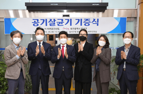 대구 달서구는 (주)자연공간산업에서 26일 달서구청 종합민원실·세무민원실에 공기살균기를 기증했다고 밝혔다.