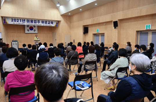 청도군은 지난 26일 노인복지관 강당에서 관내 미용업주 50여명이 참석한 가운데 (사)대한미용사회청도군지부 주최로『2021년도 미용업주 정기 위생교육』을 실시했다.